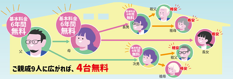 親戚含めて13台契約になり、内6台無料にする事が出来ました!